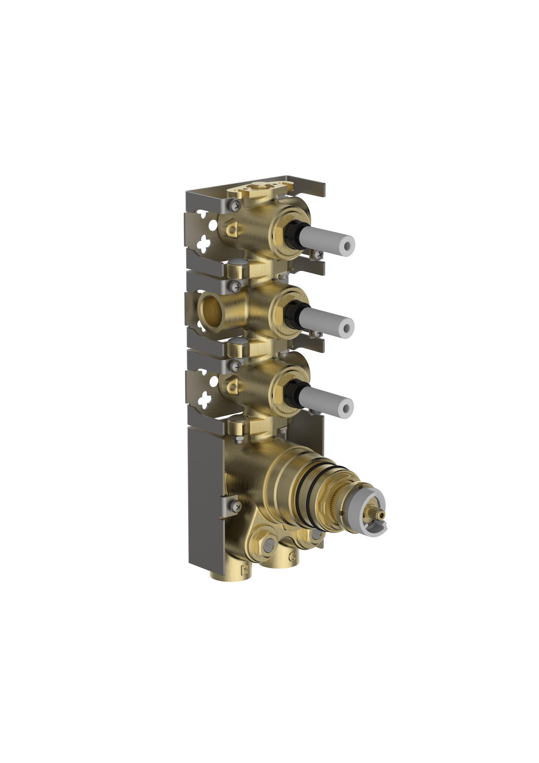 Concealed thermostatic 3 WAYS mixer with push button controls and flow rate regulation – only rough body