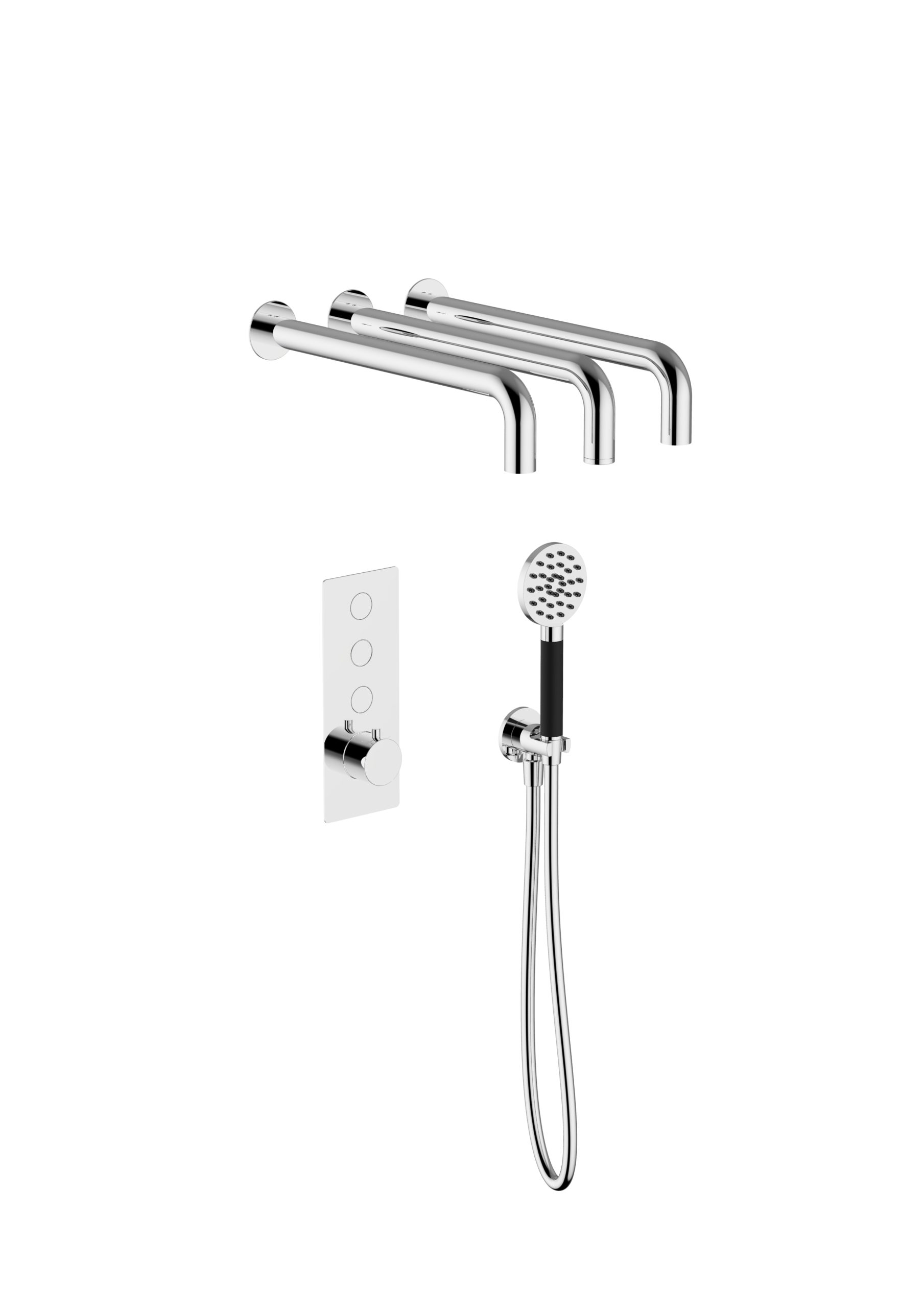 LOGAN 3 WAYS complete push button controls thermostatic mixer, 3 shower heads complete with manifold and LOLLIPOP shower set