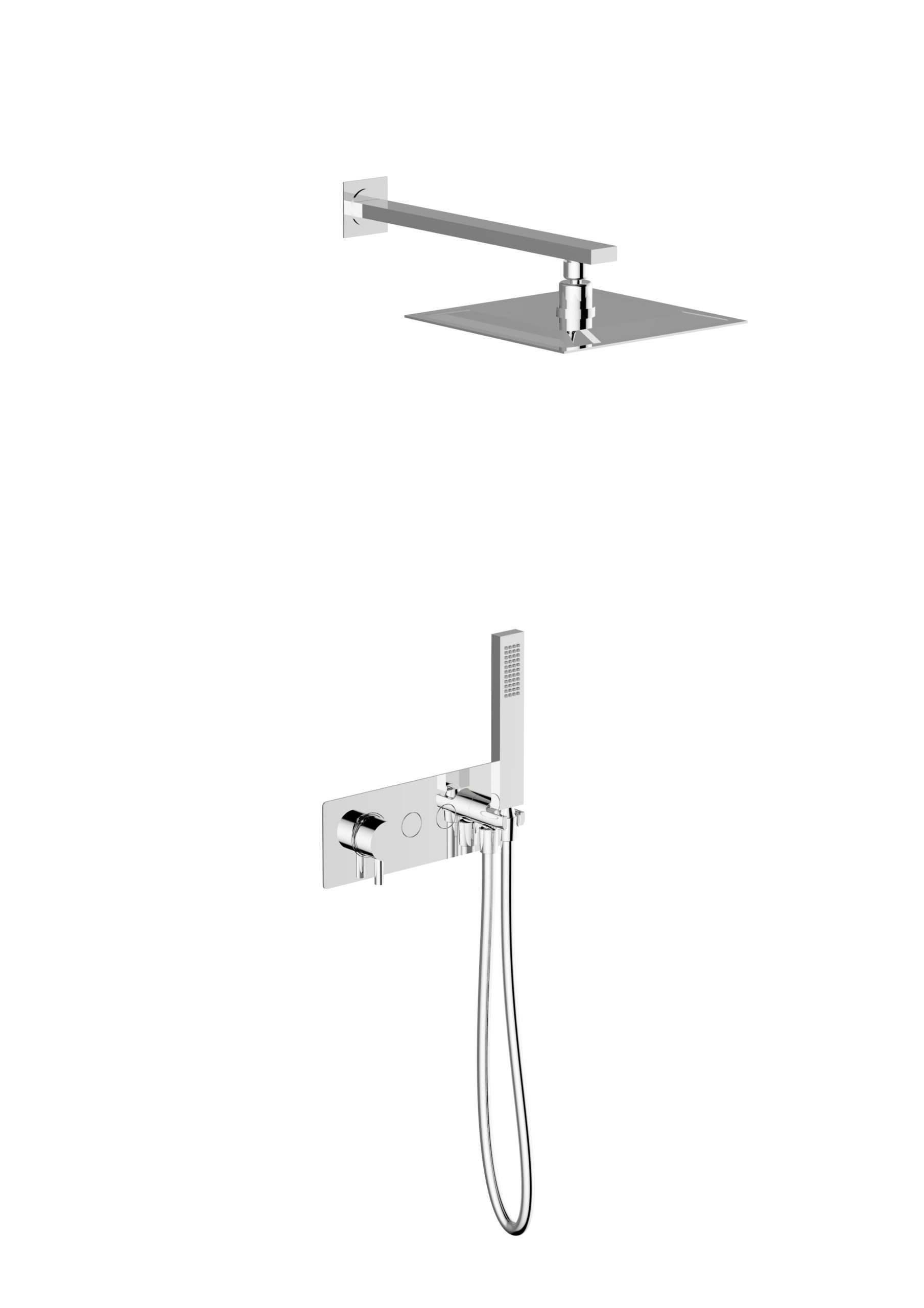 2 Ways push button controls shower system with water outlet, square shower set, 250x250mm shower head